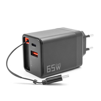 Caricabatterie da parete retrattile da 65W GaN con cavo retrattile 65W PD + adattatore per caricabatterie rapido QC3.0 per cellulare