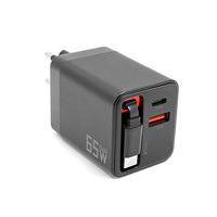 65W Wand ladegerät Schnell-PD-Ladegerät Adapter block mit USB a USB C Dual Ports Einziehbares Typ-C-Kabel 65W GAN-Ladegeräte